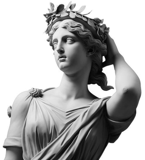 Data la natura storico-artistica della nostra sede, abbiamo deciso di prendere ispirazione da essa e incorporarla nelle nostre grafiche. Abbiamo aggiunto statue classiche, simbolo di forza, bellezza e storia, andando però a spezzare con il nostro stile controcorrente.
